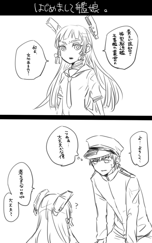 ちょっとした小話とかをかいていこうかなとおもっております。 ちなみに、初めての駆逐艦は叢雲ちゃんにしました。これは親推しでしたww 提督とかバンバン描きますのでご注意。 私自身は子日、北上様推しですね。かわいいです。好きな軽空母は鳳翔、祥鳳さんですね。 へへへ。 ちょっとした時間つぶしに本当良いゲームだなと思いました まる。 実際あったことや面白かったことを絵にしたりしていきたいですww そんな叢雲ちゃんとの出会いをちまっと。 |